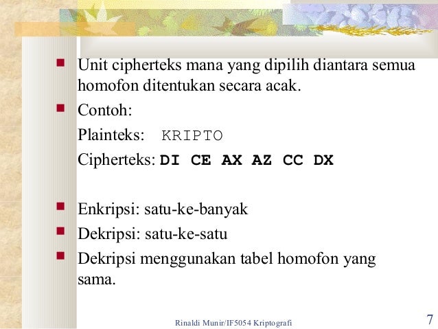 Algoritma Kriptografi Klasik Rinaldi Munir IF5054 Kriptografi 5 Kriptanalisis Terhadap Caesar Cipher Caesar cipher mudah dipecahkan dengan metode exhaustive key search karena jumlah kuncinya sangat sedikit hanya ada 26 kunci. Nilai n1 diperoleh sbb. Jika ada 2 orang S dan T ingin berkomunikasi kapan mereka harus menggunakan digital signature dan kapan cukup menggunakan message authentication.