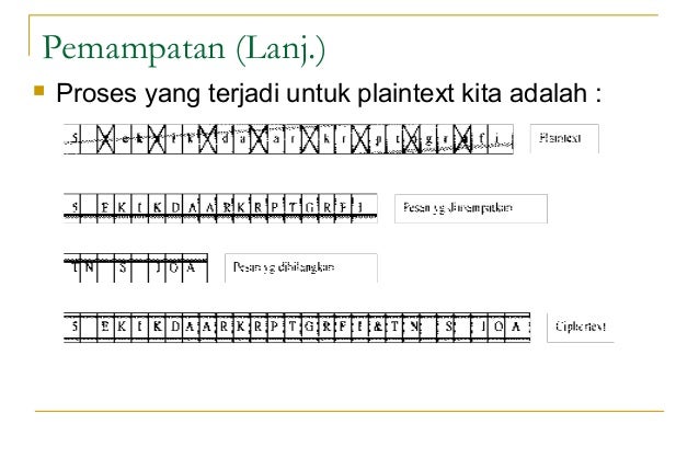 1 - 7. Kalau diterjemahkan Rail Fence Cipher setiap kata. Berikut adalah ilustrasi 4 komponen dan 2 proses yang digunakan dalam teknik kriptografi.
